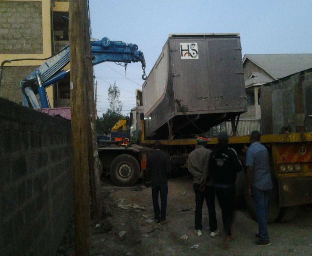 On the other hand the place where we had placed our containers in Nairobi, was sold off and turned into a construction site because this plot was sold off and was also filled with construction materials all over the place, which made it hard for us to lift the containers from this site easily. We had to clear off the stones and other construction materials, before we could lift our containers off from this plot.